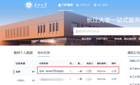 方式二:进入韦德体育bevictor办事大厅,选择“待办任务”后,点击“处理”,即可以进行审批 |