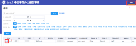 1.点击“申请”菜单后,点击下方的“查看”操作按钮进入到查看详情页面 |