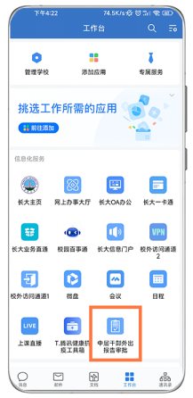 中层干部外出报告审批服务在我校“网上办事大厅”已更新上线,现正式启用更优化更快捷的“在线办理、线上审批”全流程线上服务。