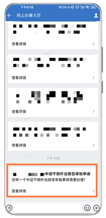 方式一:进入应用,点击“审核”。 方式二:若使用企业微信app,点击消息界面中的“网上办事大厅”,点击相应记录。 |