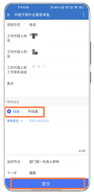 2、选择审批意见后,点击提交。 |